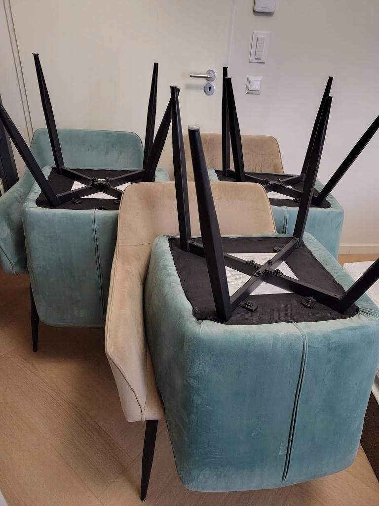 Wij bieden 6 eetkamerstoelen gratis aan. Het gaat om een mix van groen en beige (zie foto’s). De stoelen zitten nog prima en staan stevig, maar de bekleding is helaas niet meer mooi doordat onze katte