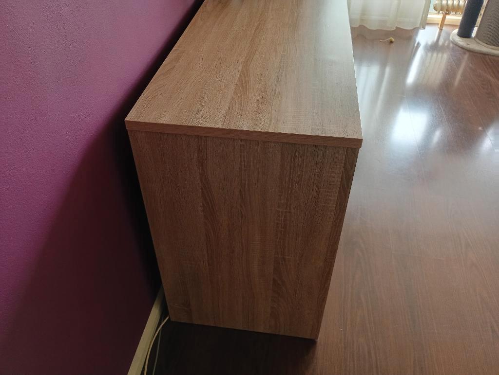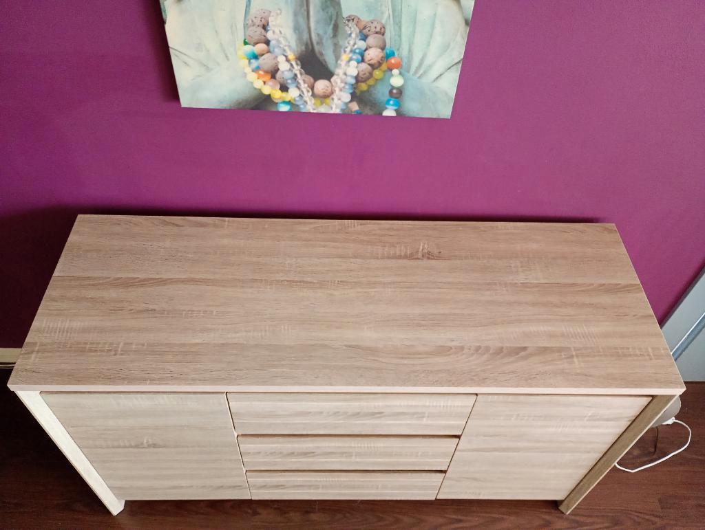 Dressoir is in goede conditie, 3 ruime lades en twee kastjes. Afmetingen zijn: 141x50x80. Dressoir is vrij zwaar en kan niet uit elkaar.