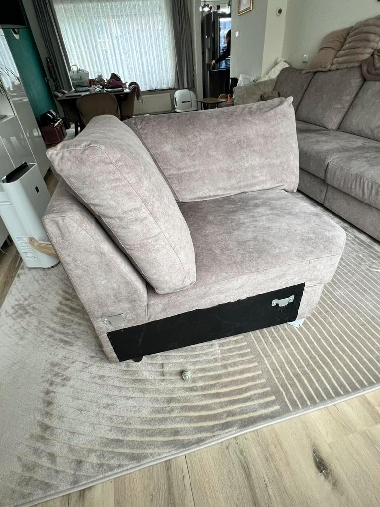 Hoekelement bank , we gebruiken de bank niet meer in hoekvorm. Taupe kleur. Gekocht in eindhoven nisa outlet, 1 jaar oud niet ingezakt