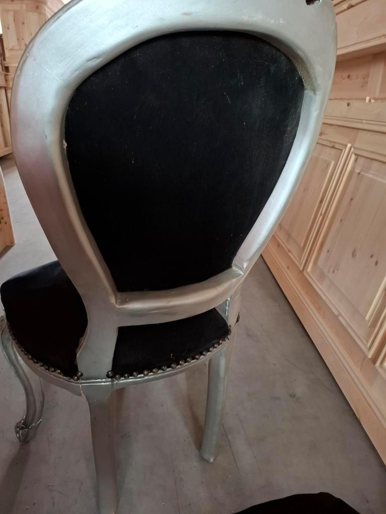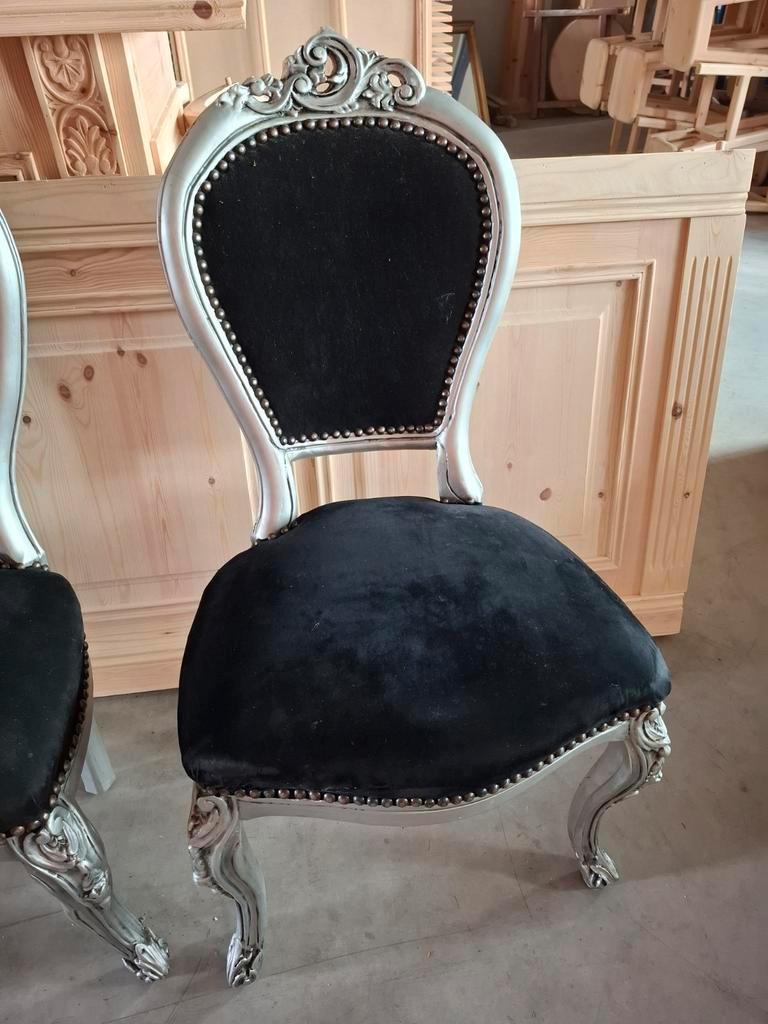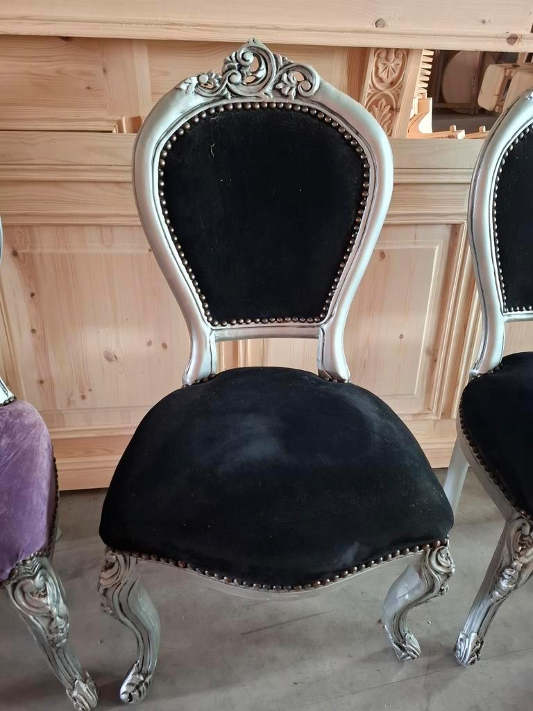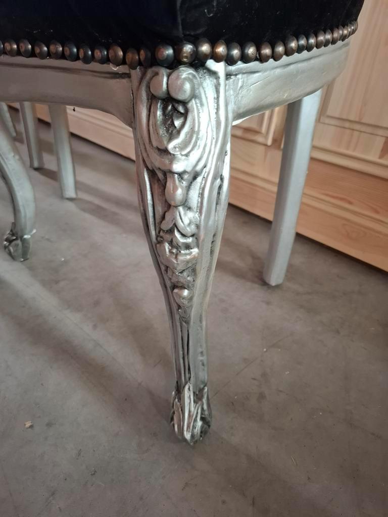2x barok stoel, zacht fluweel, diep zwarte l: 110cm b: 55 cm d: 42cm hoogte tot zitting: 50cm moeten versteviged worden (zie foto). Niet gezakt, niet versleten en geen vlekken. Vandaag ophalen in helm