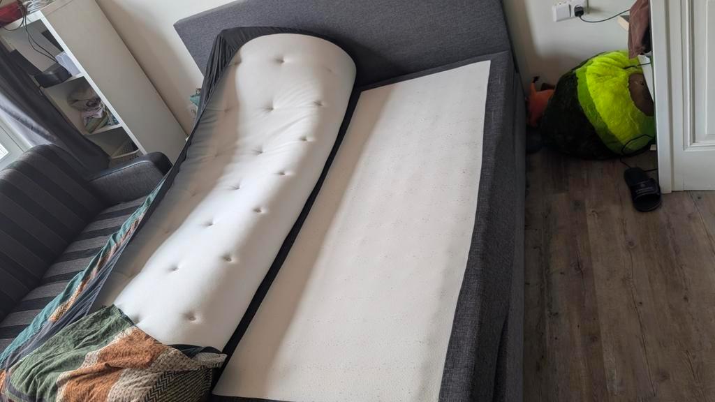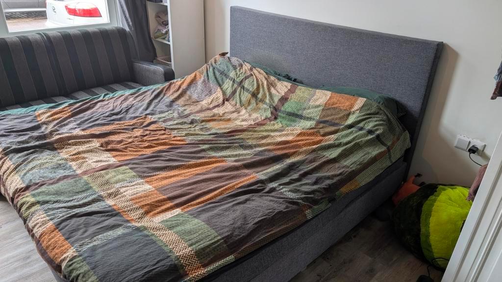 Boxspring in goede staat met hoofdbord kussens en dekens niet inbegrepen