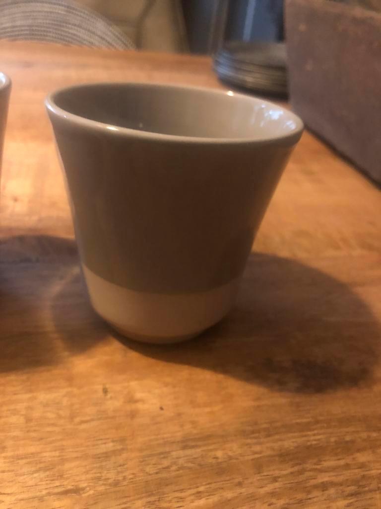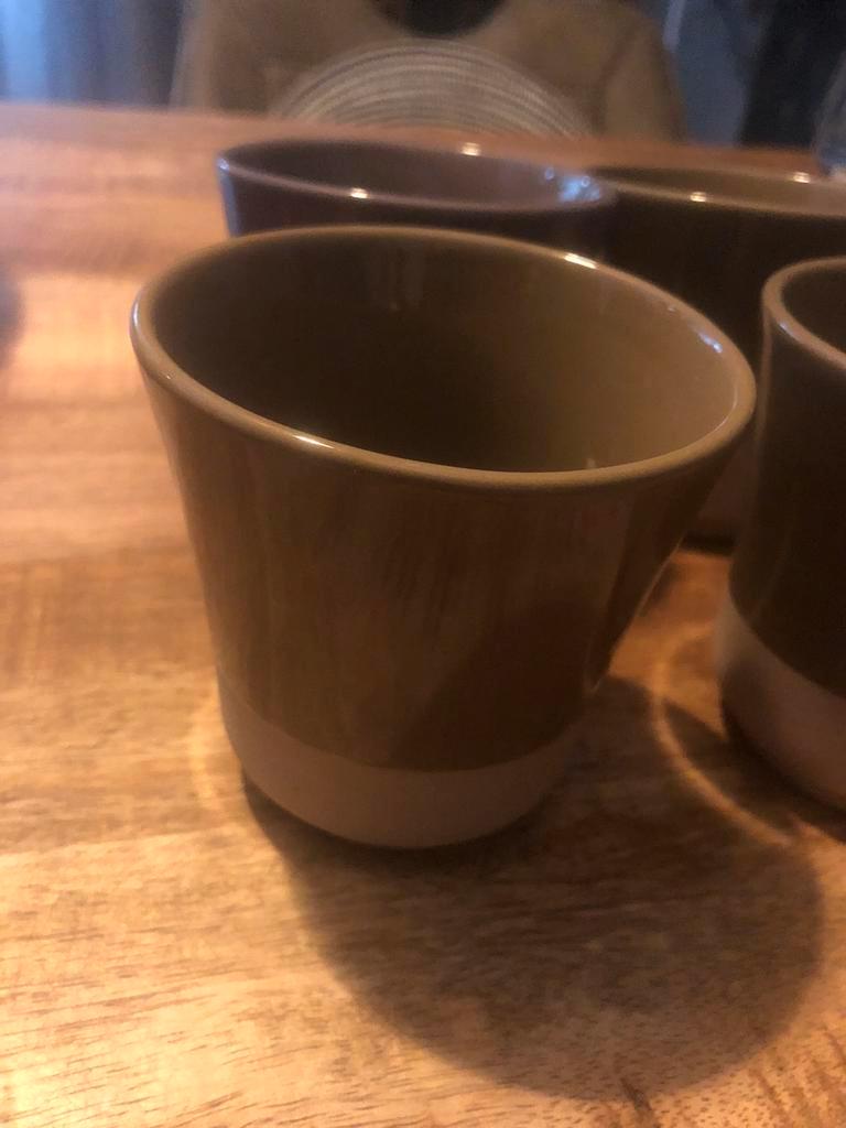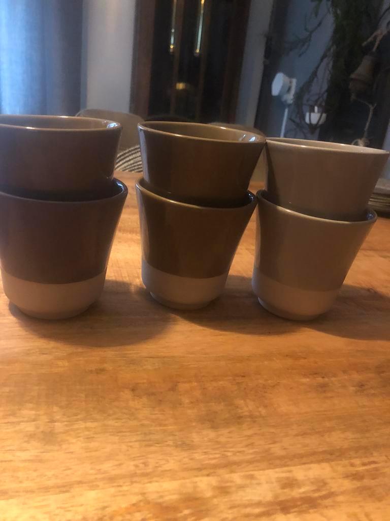6 mokken zo goed als nieuw. 4 Bruin en 2 grijs. Prijs: gratis. Ophalen in geleen