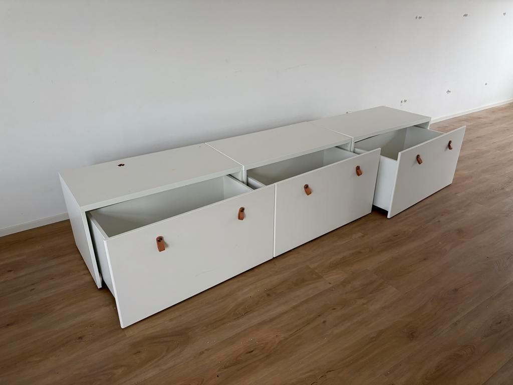 Drie gebruikte ikea stuva ladekasten. Ze hebben her en der wat gaten, maar kunnen gratis worden opgehaald vandaag of morgen. Ideaal voor iemand die ze kan gebruiken of opknappen!