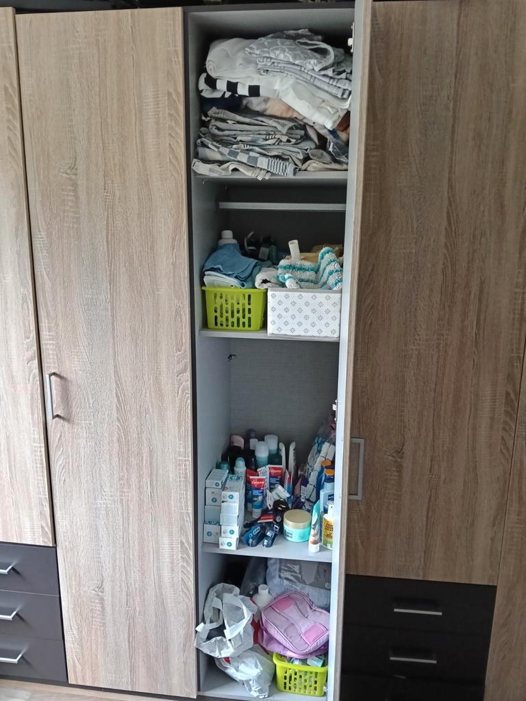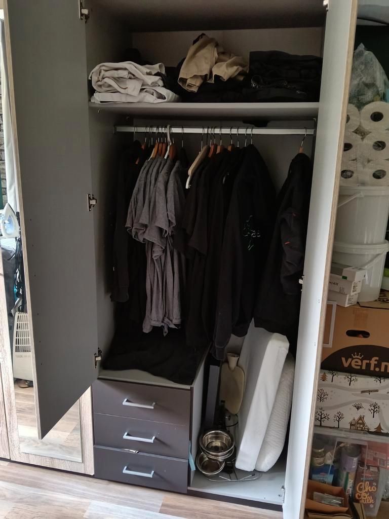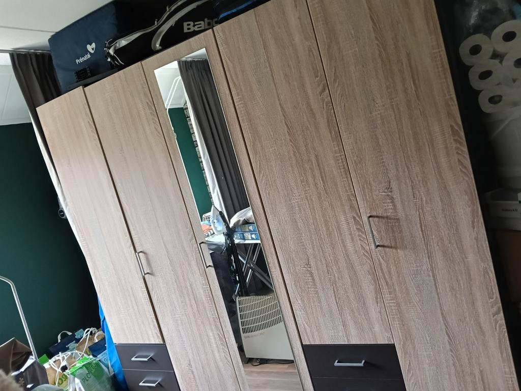 Gratis 5 deurs kast op te halen. 2X verhuisd maar kan nog een ronde mee. 2X3 laden, middenkast met spiegel en 2x hanggedeeltes. 220 Breed 58 diep 207 hoog kleur is bruin aan de zijkanten en deuren zoa