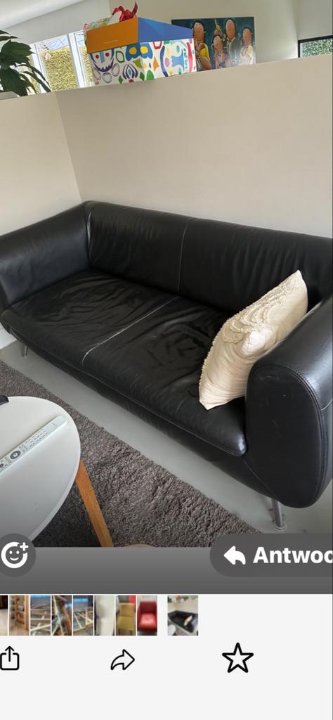 Zwarte leren bank, gratis af te halen. De bank is gebruikt maar in goede staat. Ideaal voor een studentenkamer of als extra zitplek. Afmetingen zijn ongeveer 2 meter breed en 80 cm diep. Zelf ophalen.