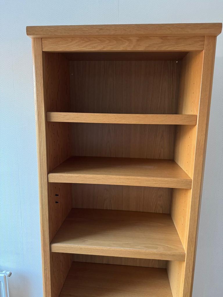Mooie houten boekenkast met een fineer afwerking. De kast is stevig en biedt veel opbergruimte voor boeken en andere spullen. Ideaal voor de woonkamer, studeerkamer of slaapkamer. Afmetingen zijn indi
