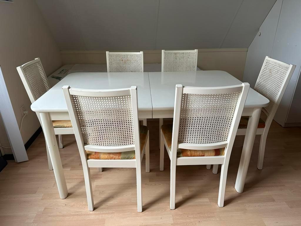 eettafelstoelen eetstoelen 6x wit hout zit H45xD37xB44 stof