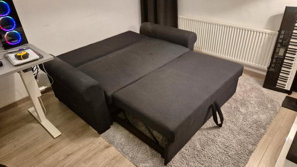 Zitgedeelte: 45cm hoog, 52cm diep, 130cm breed in bedstand: 130cm breed, 185cm lang hoofdboord: 95cm hoog met kussens (68cm hoog)