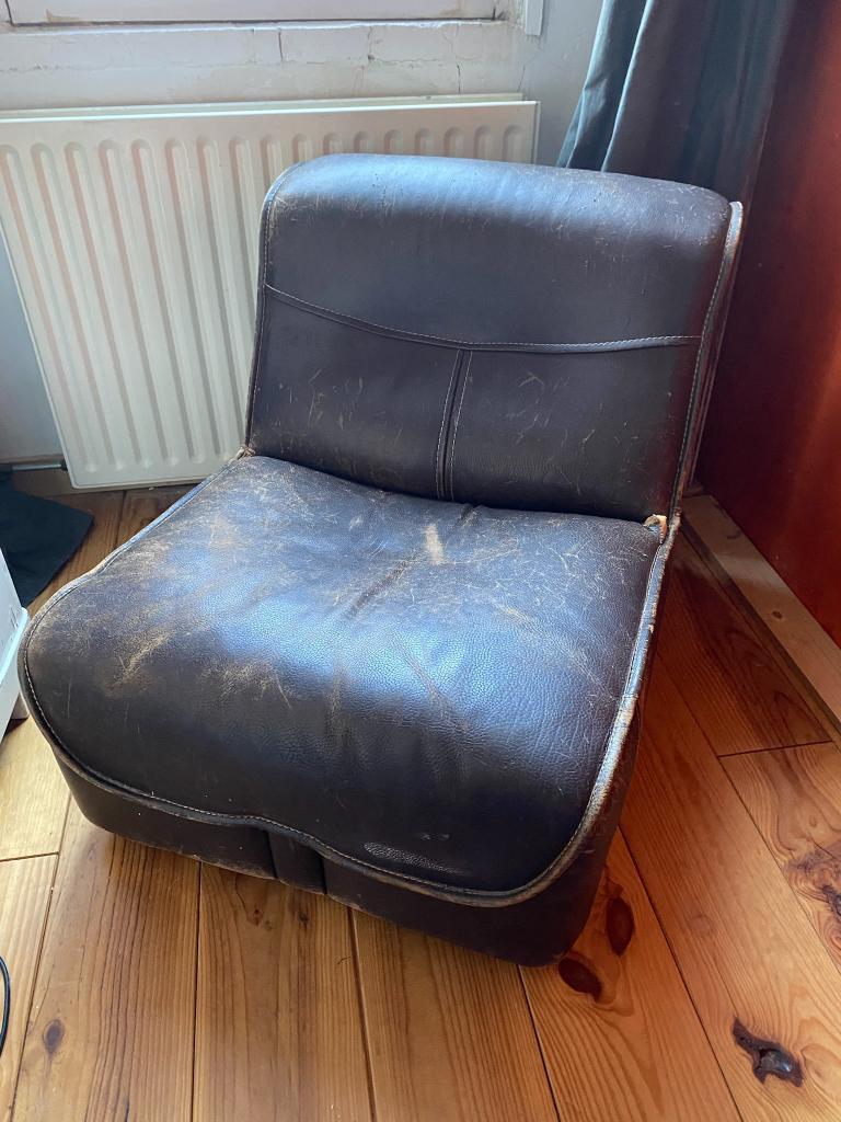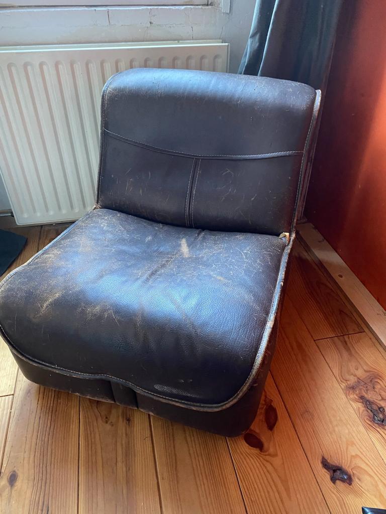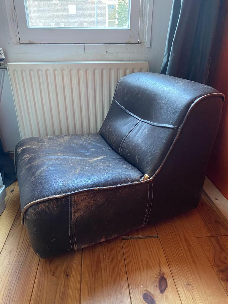 Mooie leren stoel gratis afhalen. 1 Trap naar beneden tillen, of touw uit het raam. Liefst zsm ophalen. In de kinkerstraat. Diepte: 93 cm hoogte: 72 cm zit hoogte: 35 cm breedte: 71 cm