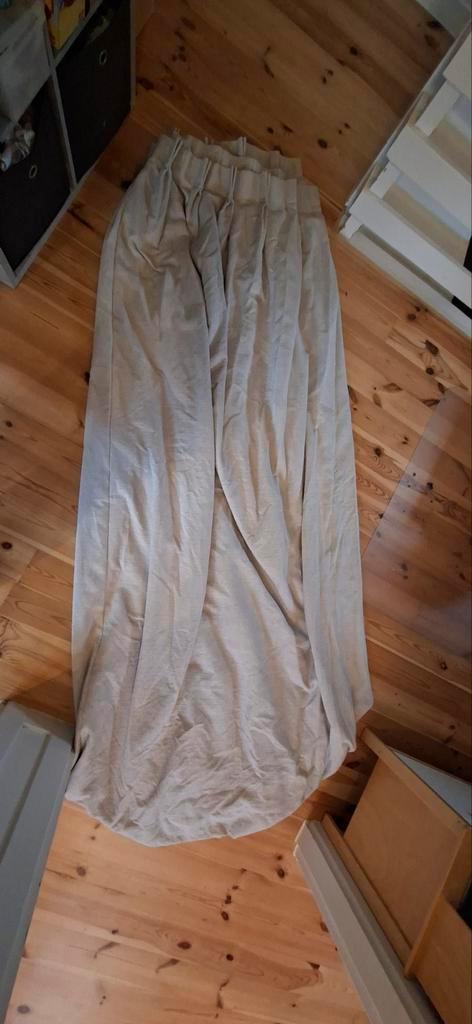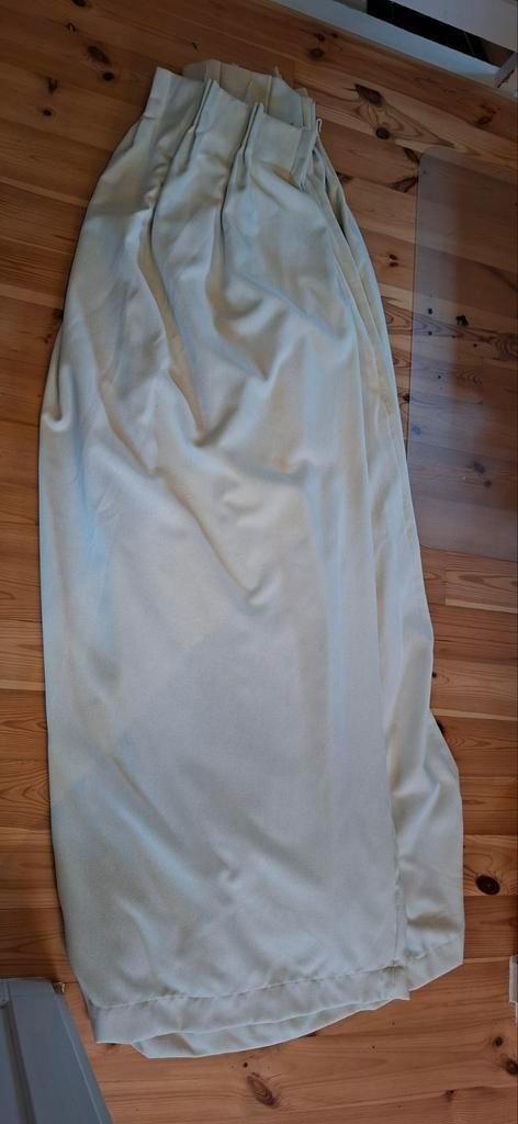 Gratis af te halen: een verzameling gordijnen in verschillende maten en kleuren. - 2X groen: breedte 135cm, hoogte 192cm & breedte 137cm, hoogte 92cm - 2x gebroken wit met verticaal streepje: bree
