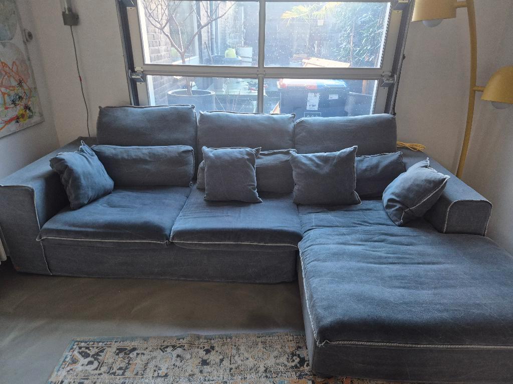 Gratis blauwgrijze hoekbank in tilburg op te halen.