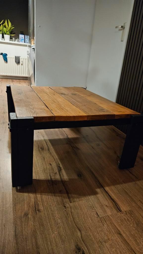 Gebruikte steigerhouten salontafel met afmetingen 108x84x43 cm. De tafel is gratis af te halen.
