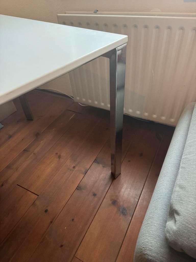 Tafel met chromen tafelpoten 180x90x73(lengte, breedte, hoogte), blad heeft gebruikssporen