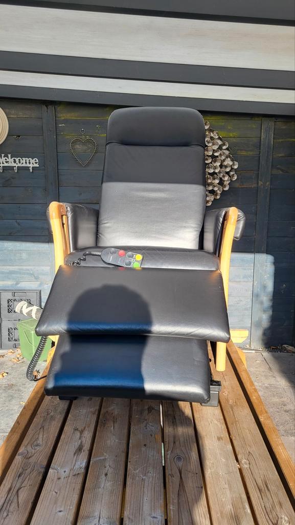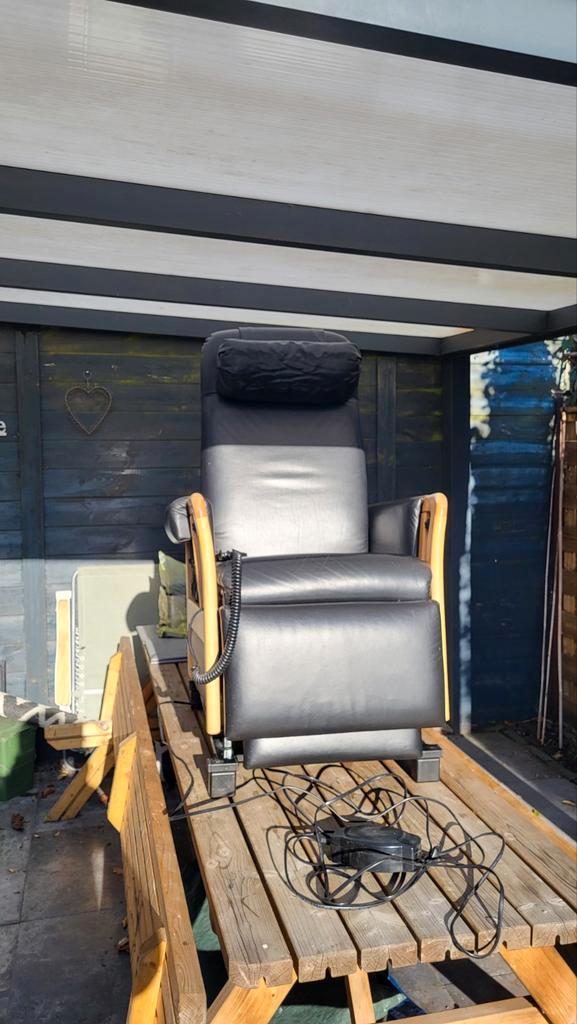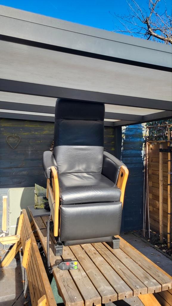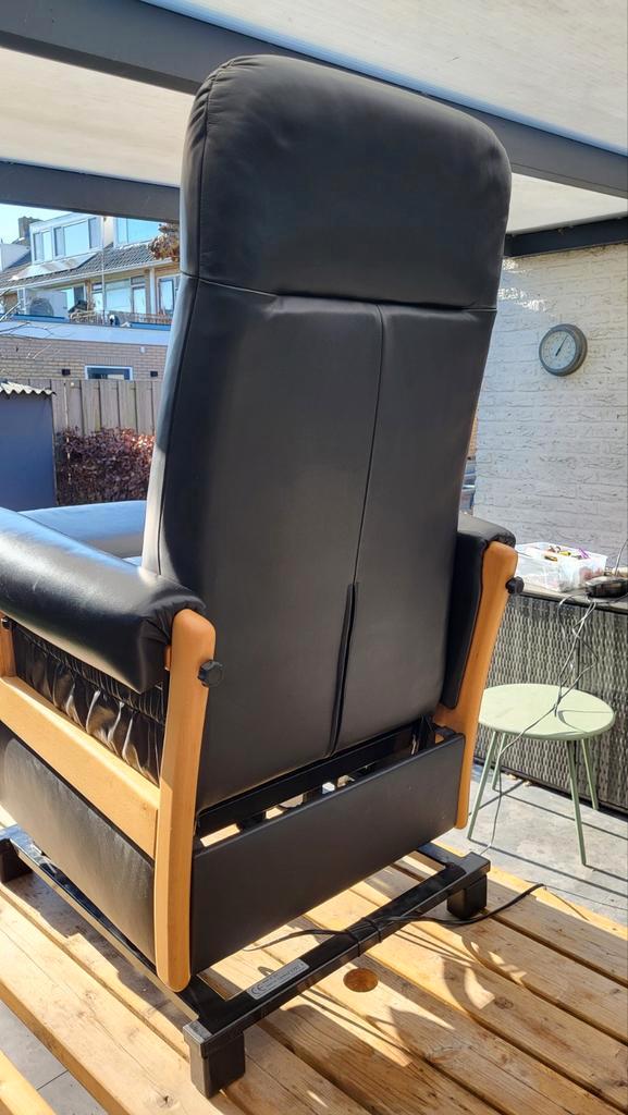 Leren relax/sta-opstoel. Functioneert 100%. Gefabriceerd door mfo (meubelfabriek oldenzaal). Ziet er netjes uit. Degelijk en stabiel. Kan voor transport gedeeltelijk worden gedemonteerd (niet licht).
