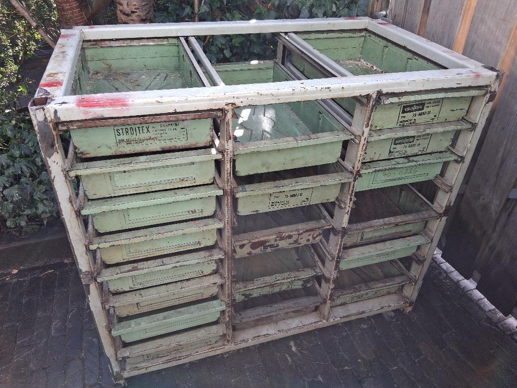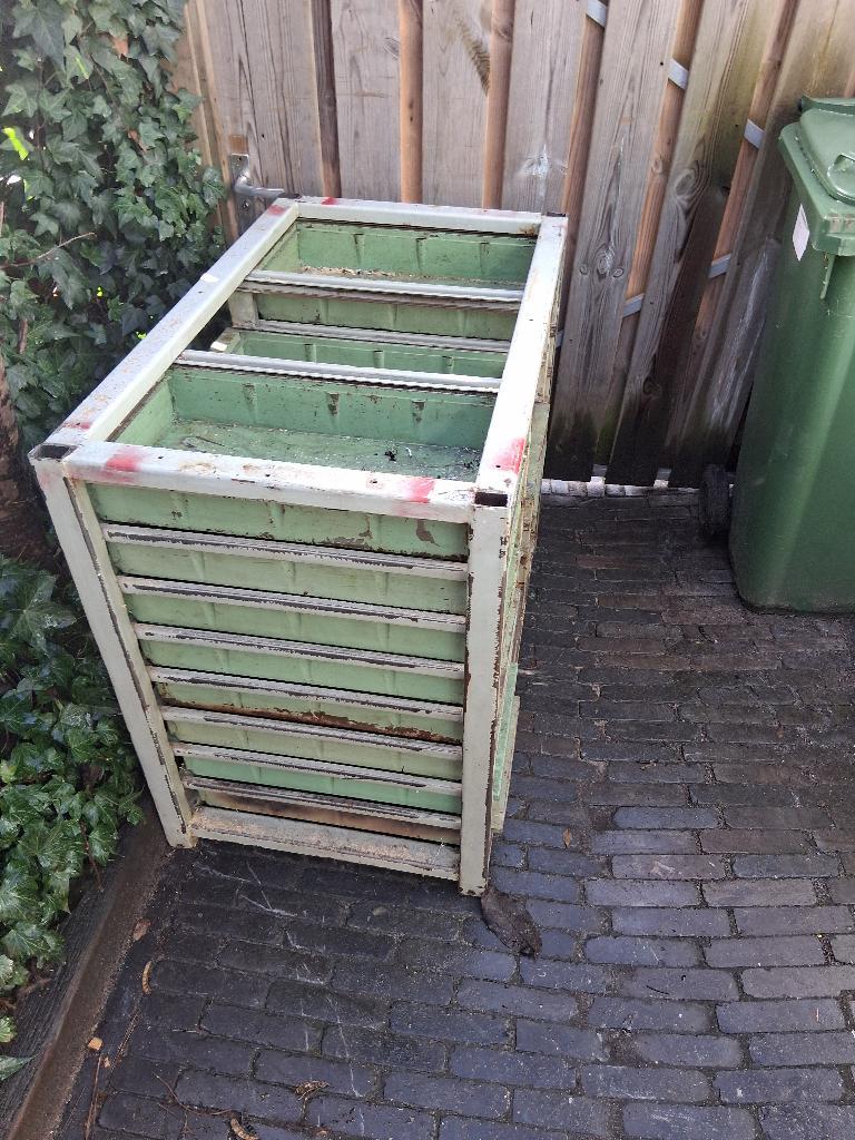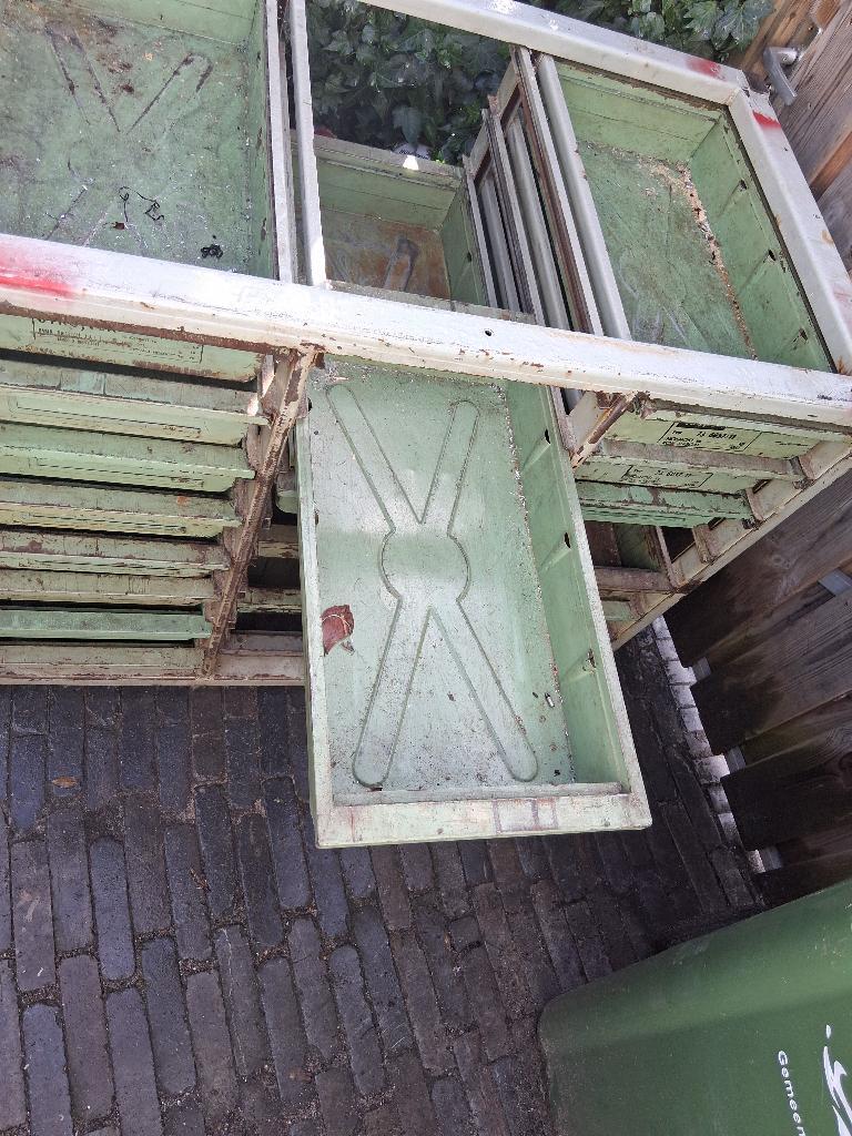 Er missen 5 lades en sommige lopen zwaar. Ex oostblok. Afmetingen 100 breed 60 diep 86 hoog.