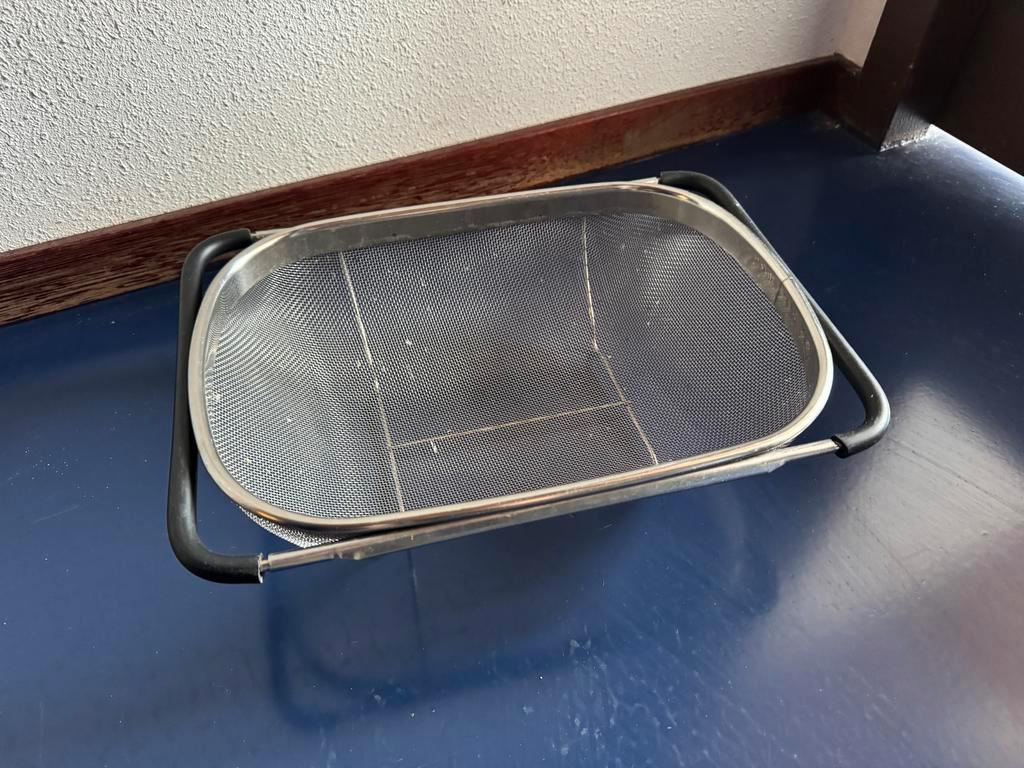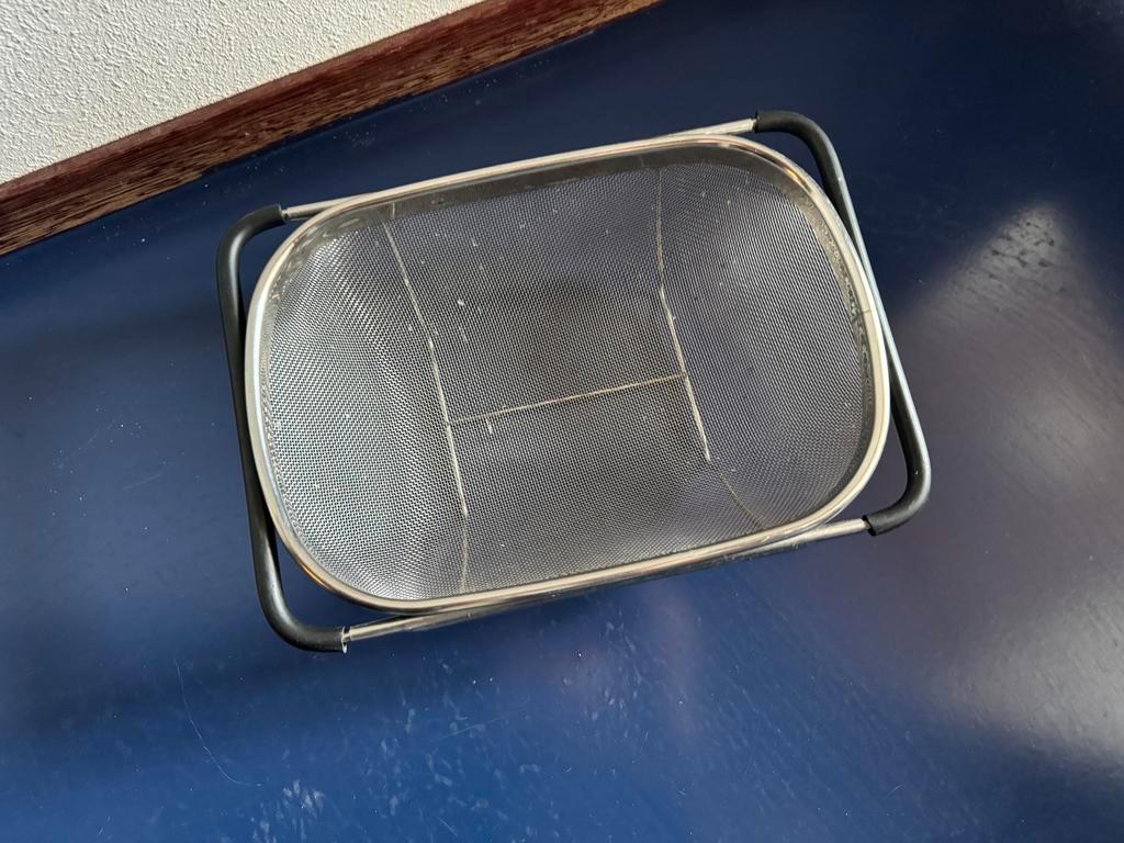 Een gebruikt metalen vergiet. Ideaal voor het afgieten van pasta, groenten of fruit. Het vergiet is in goede staat en klaar voor gebruik. Kan in de wasbak gehangen worden. Afhalen kan in de avond op m