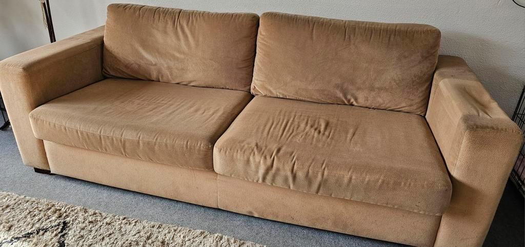 Gebruikte bank gratis af te halen. Heeft altijd een deken opgelegen. Ik heb op de leuningen een bankdienblad liggen omdat 1 leuning is doorgezakt.