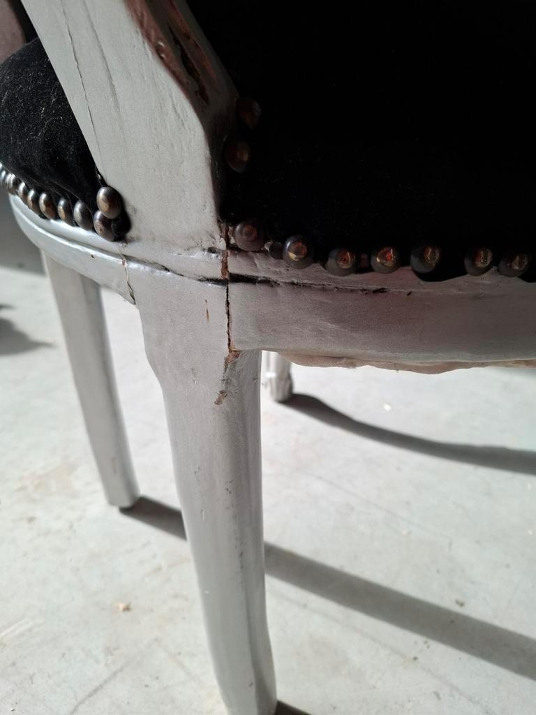 2x barok stoel, zacht fluweel, diep zwarte l: 110cm b: 55 cm d: 42cm hoogte tot zitting: 50cm moeten versteviged worden (zie foto). Niet gezakt, niet versleten en geen vlekken. Vandaag gratis ophalen