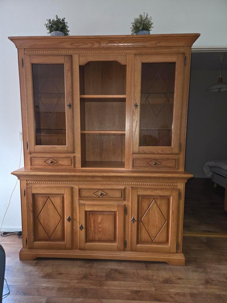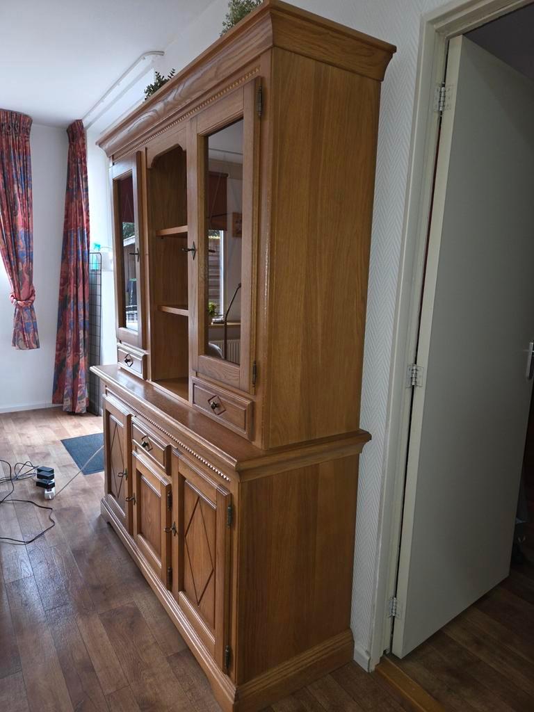 Een prachtige buffetkast van hout. De kast heeft zowel deuren als lades, en biedt veel opbergruimte. Ideaal voor in de woonkamer of eetkamer. De kast is in goede staat.