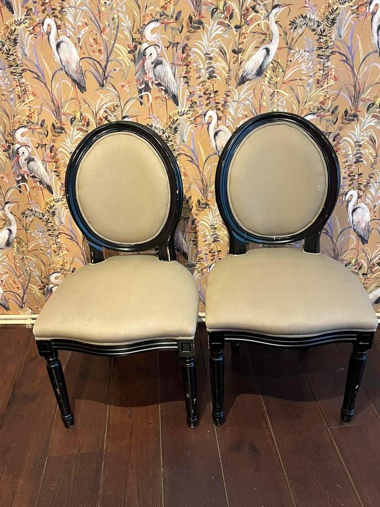 2 brocante eetkamerstoelen. Gratis af te halen. Opknappers (zie foto’s).