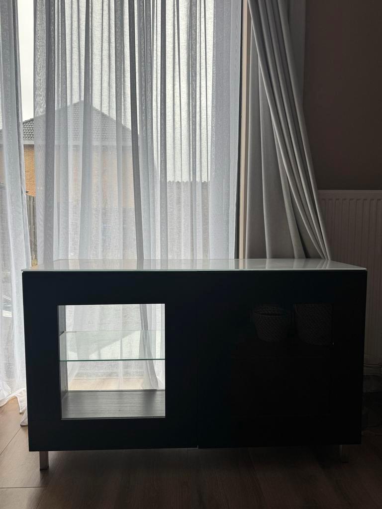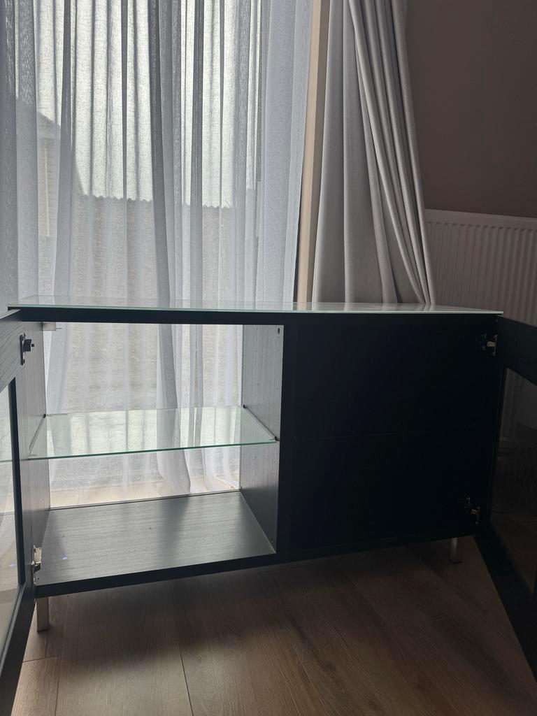Gebruikt / gratis ophalen ikea tv-kast met een melkglazen plaat bovenop en twee glazen platen aan de binnenkant. 1 Achterzijde is open vanwege tv kabels. Afmetingen: 120 cm breed, 41,5 cm diep en 74,5