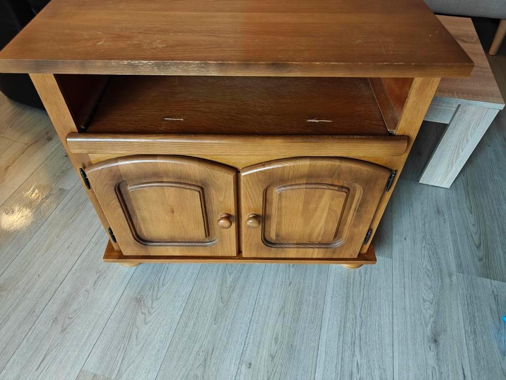 Klein houten kastje met twee deurtjes en een open vak. Ideaal als nachtkastje of bijzettafeltje. Gebruikt, maar in goede staat.gratis ophalen