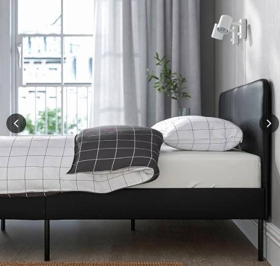 1 persoonsbed 90x200 ikea slattum + lattenbodem betreft de zwarte versie met een soort kunstleer / skai bekleding. Is al deels gedemonteerd voor makkelijk vervoer. Exclusief matras. Gratis af te halen
