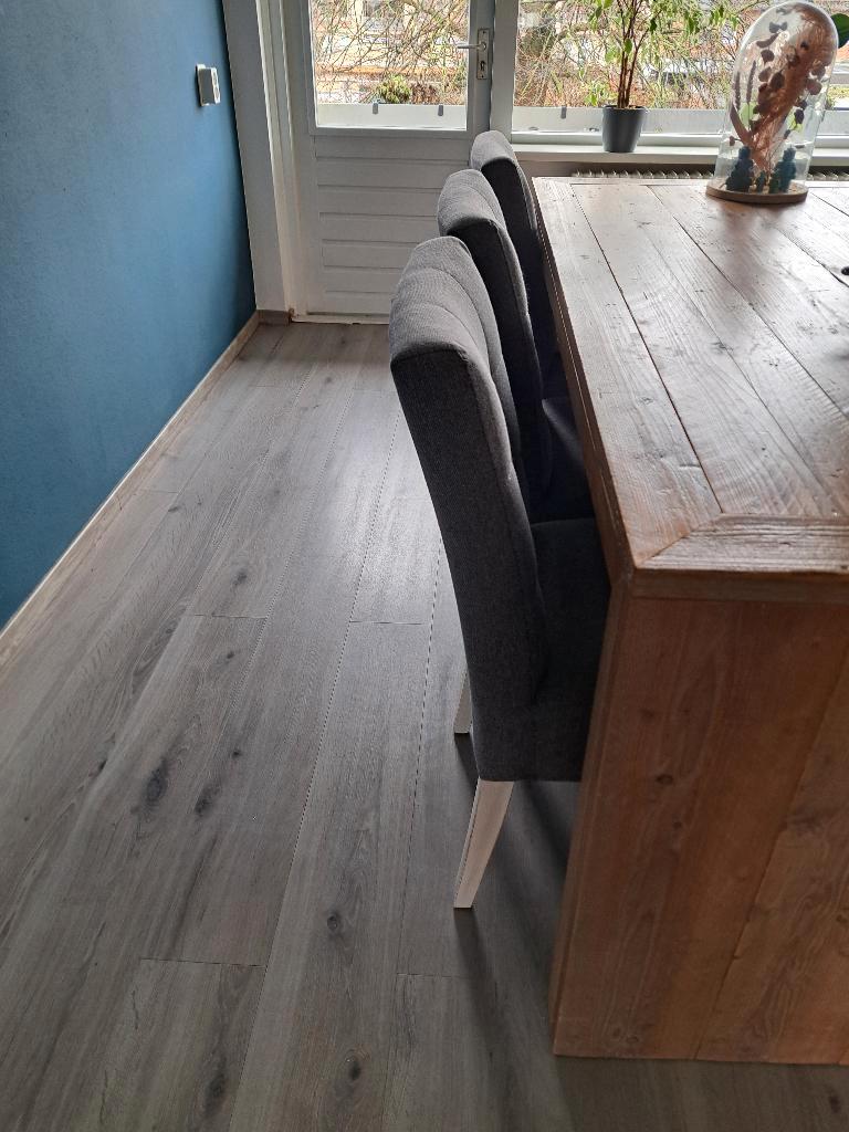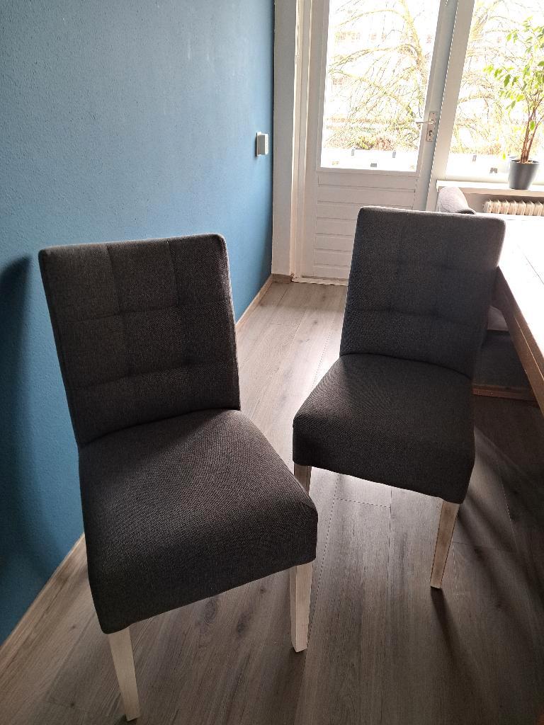 6 nette eetkamer tafel stoelen. Ze zijn gemaakt van een grijze stof. Ze hebben gebruikerssporen maar gaan nog prima een tweede ronde mee. Gratis op te halen in venlo
