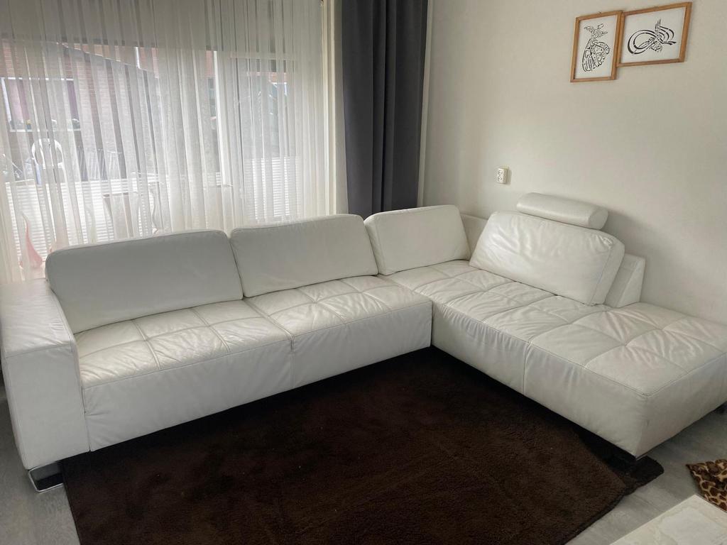 Mooie witte leren hoekbank in nette staat. Comfortabele zit en een stijlvolle toevoeging aan je woonkamer. De bank is goed onderhouden en heeft een tijdloos design. Perfect voor een modern interieur.