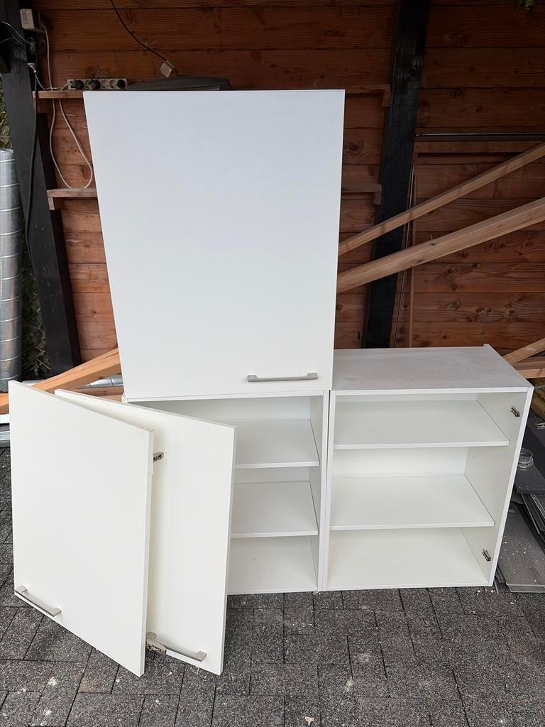 Drie gebruikte keukenkastjes voor bovenkasten. Afmetingen: hoogte 78cm, diepte 36cm, breedte 40cm per stuk. Inclusief deurtjes en planken. Gratis op te halen bij dierenriem 57, amsterdam. Alleen overd
