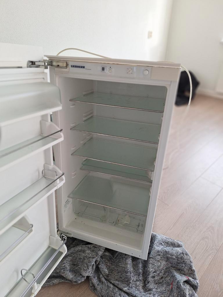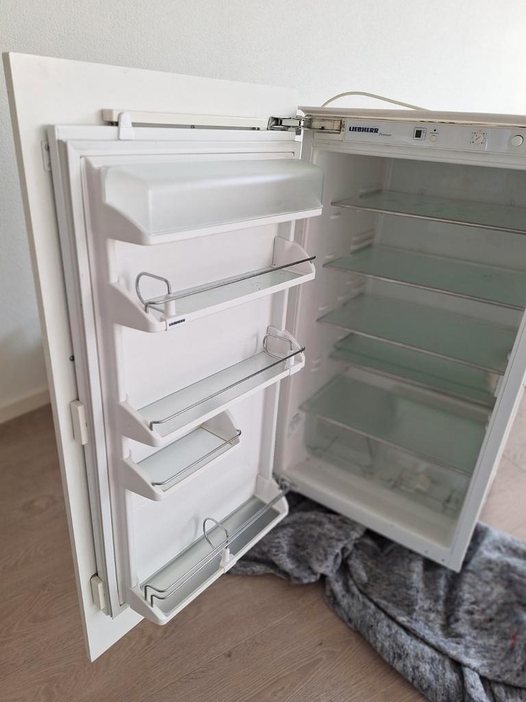 Inbouwkoelkast, in goede staat en klaar voor gebruik. Afmetingen: hoogte 101cm, breedte 56cm. Zo goed als nieuw. Eventueel 3 bijbehorende kastjes voor erbij.