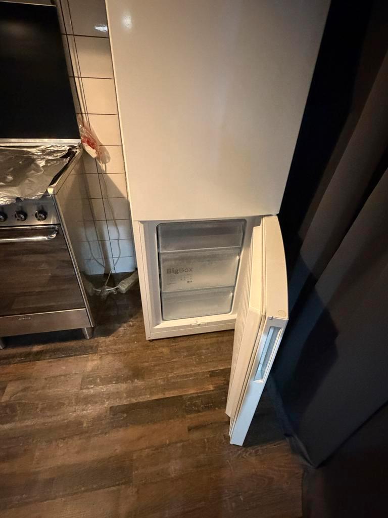 Deze vrijstaande koelkast met vriesvak is ideaal voor kleine huishoudens of als extra koelruimte. De koelkast is in goede staat en heeft een handige indeling met verschillende planken en vakken. Het v