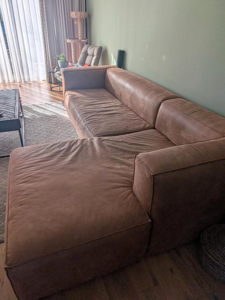 Gebruikte hoekbank. Specificaties: - breedte (cm) 305 - hoogte (cm) 73 - diepte (cm) 96 - zithoogte (cm) 44 - zitdiepte (cm) 67 gratis op te halen, uiterlijk donderdag 19 februari. Bij voorkeur uiterl