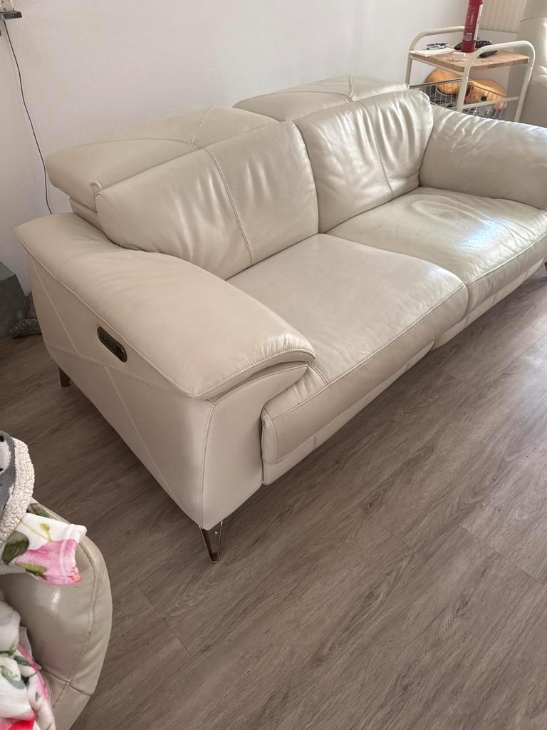 Wegens overcompleet bieden wij deze comfortabele witte leren hangbank aan. De bank vertoont gebruikerssporen, maar is nog in goede staat. De bank is voorzien van diverse elektronische snufjes, waarond