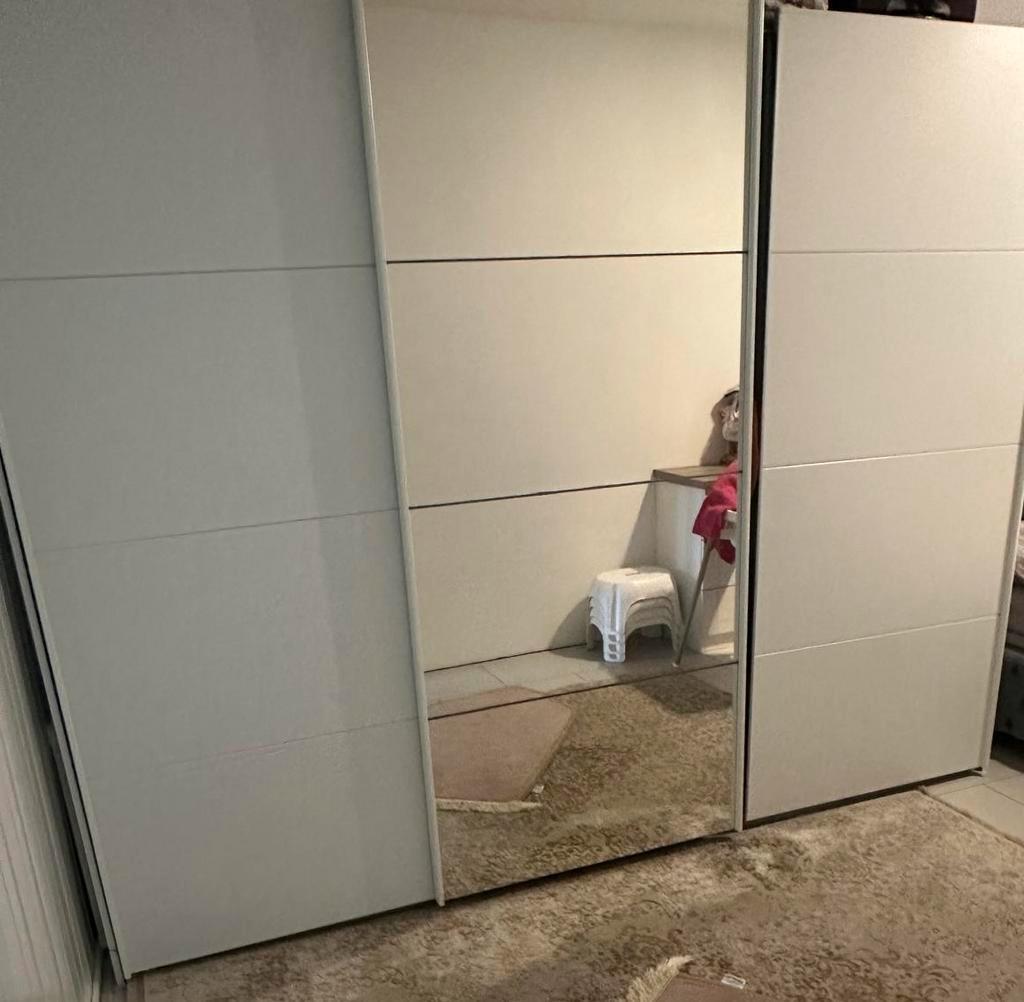 Mooie en ruime kledingkast met schuifdeuren. De kast biedt veel opbergruimte. Ideaal voor de slaapkamer of inloopkast. De kast heeft planken en aanhanggedeeltes. Afmetingen: 260x190