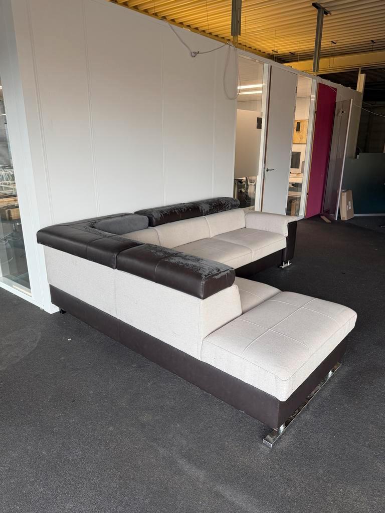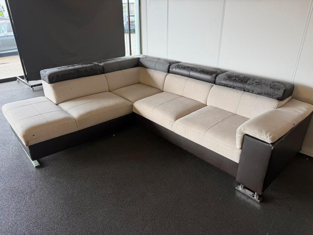 Deze hoekbank biedt veel zitruimte en comfort. De bank is gebruikt en vertoont gebruikssporen, maar is nog steeds functioneel en kan prima dienst doen. Ideaal voor een studentenkamer of als tijdelijke