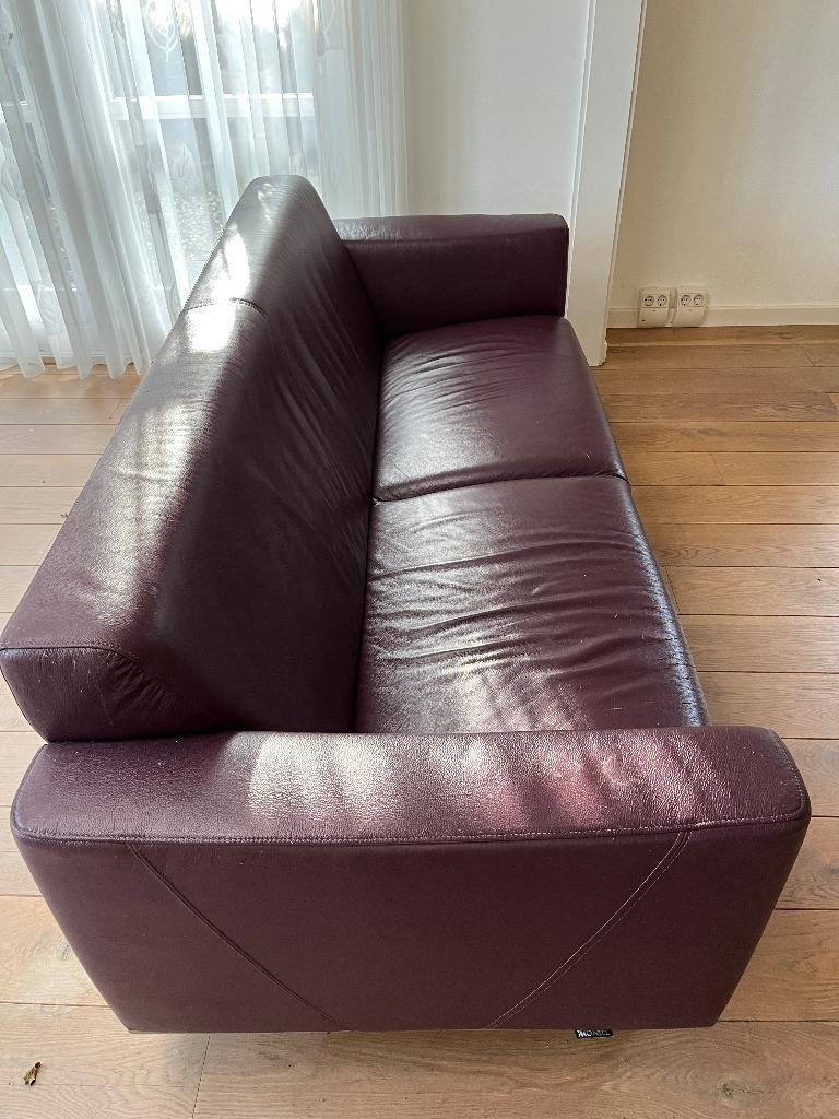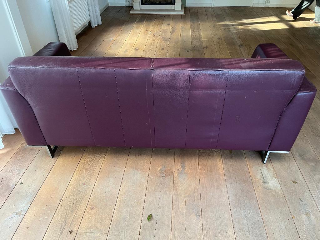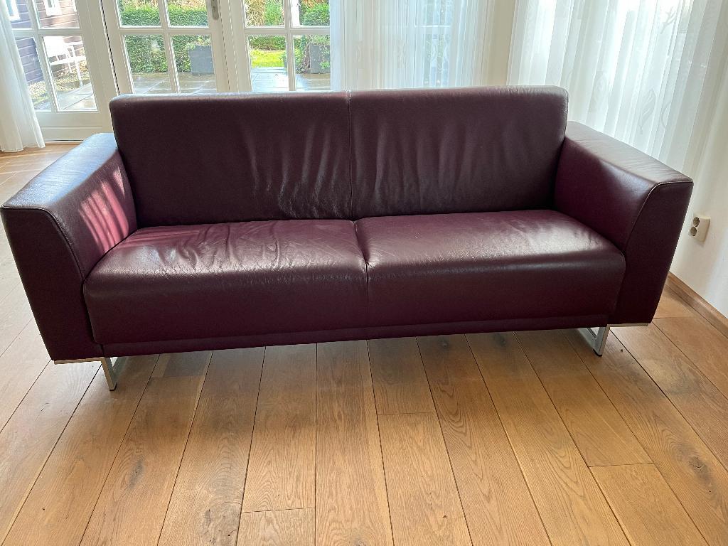 Let op: afhalen in renkum!! (Ligt in de buurt van wageningen/arnhem) ruime 3-zitsbank van montel sky. Kleur is donkerpaars / wijnrood. Afmetingen (lxbxh) 205x90x80 cm. De bank heeft gebruikerssporen,
