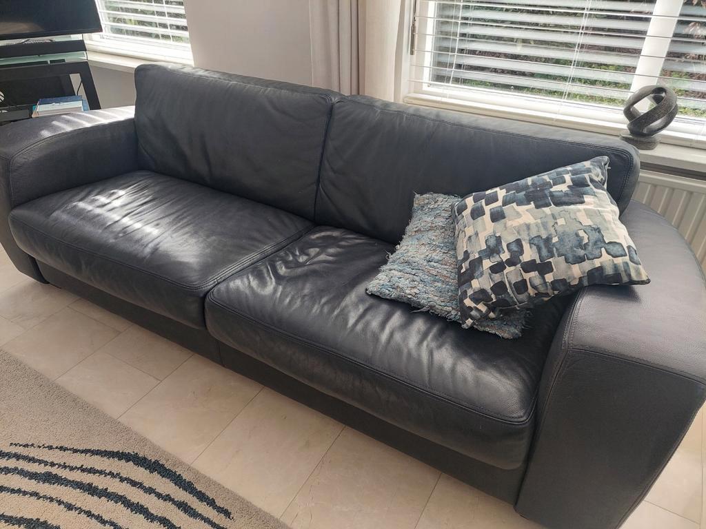 2 leren banken kleur donkerblauw. Gebruikt. Ook apart op te halen.de conditie is goed. Breedte 230 cm, diepte 85 cm en hoogte 75 cm. Ophalen.