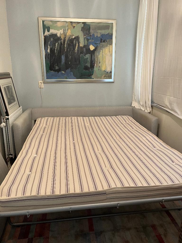 Gratis op te halen, zeer comfortabele bedbank. Breedte 2 m, diepte ( als bank) 1 m stoffen lindengroene kleur bekleding vanwege het opklapbare bedmechanisme wel zwaar. Met 3 personen ophalen, denk ik