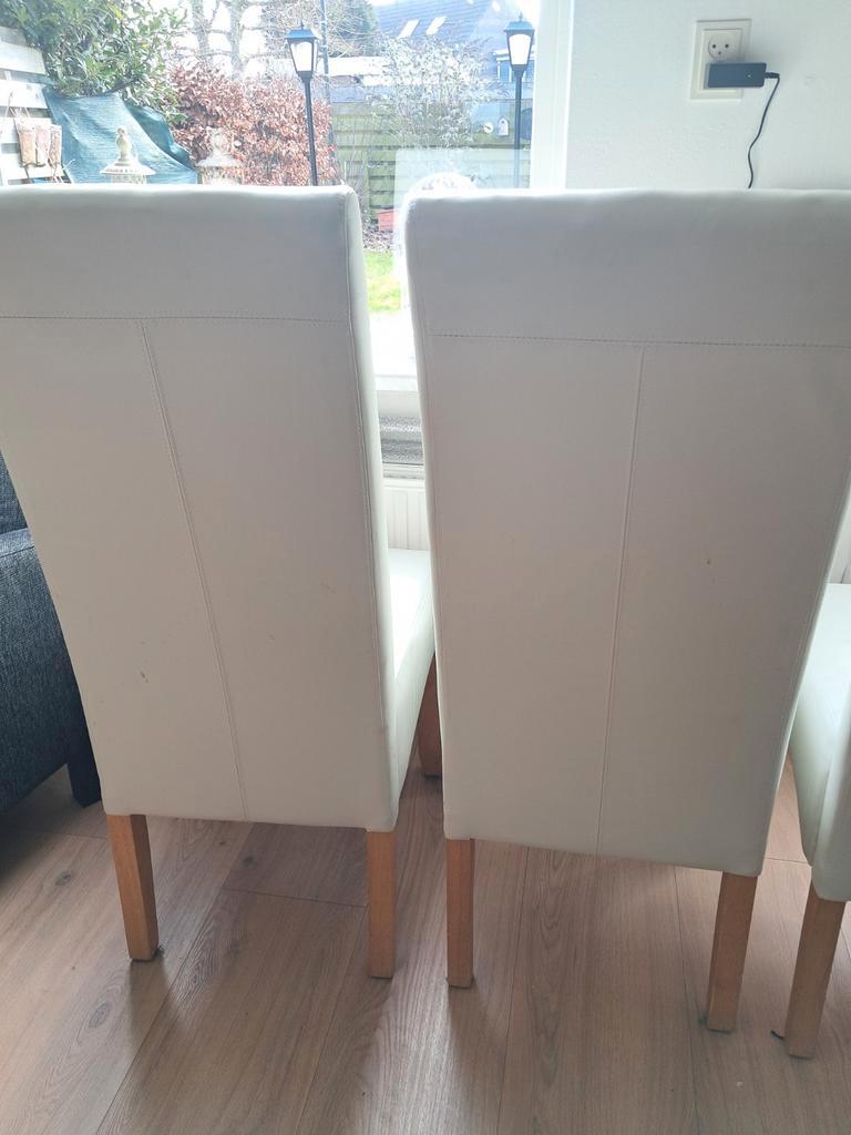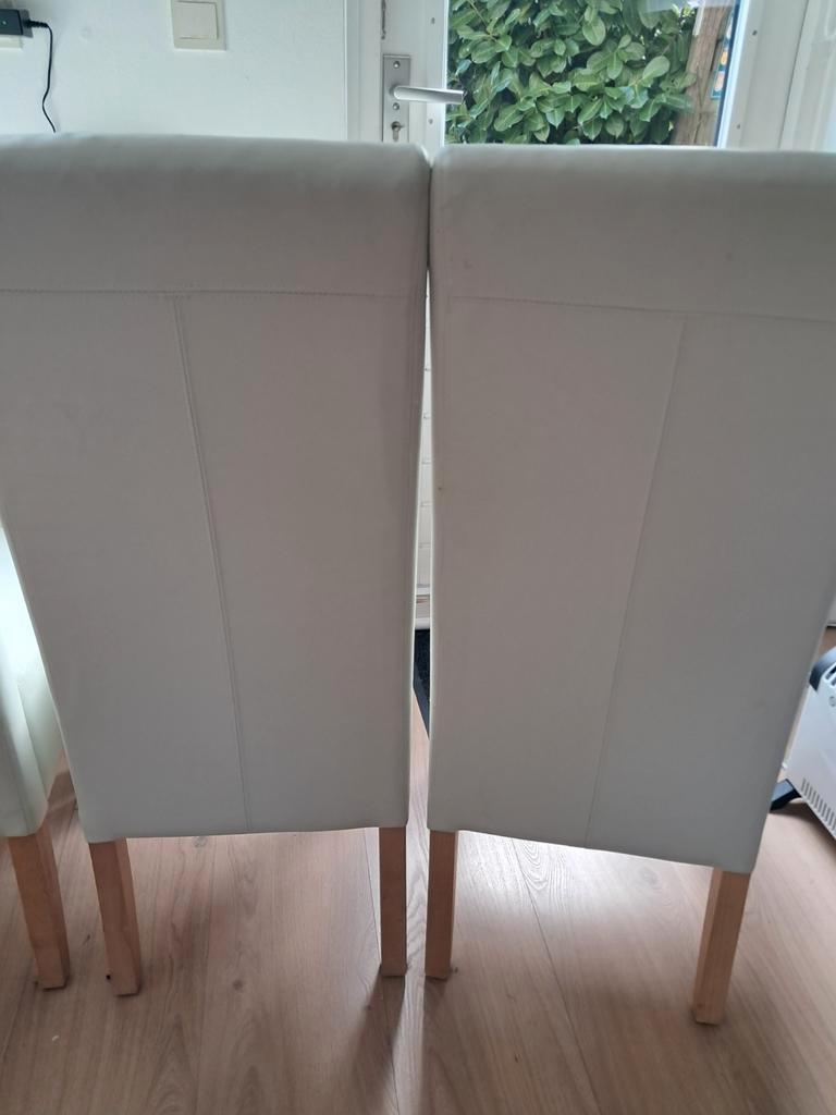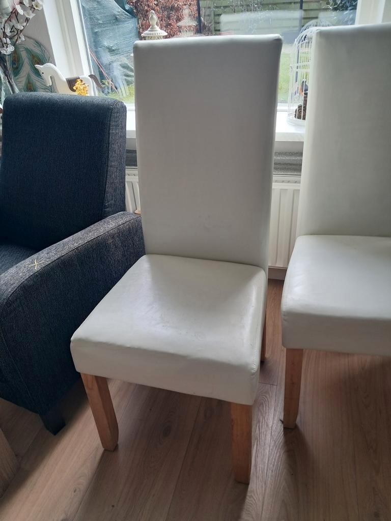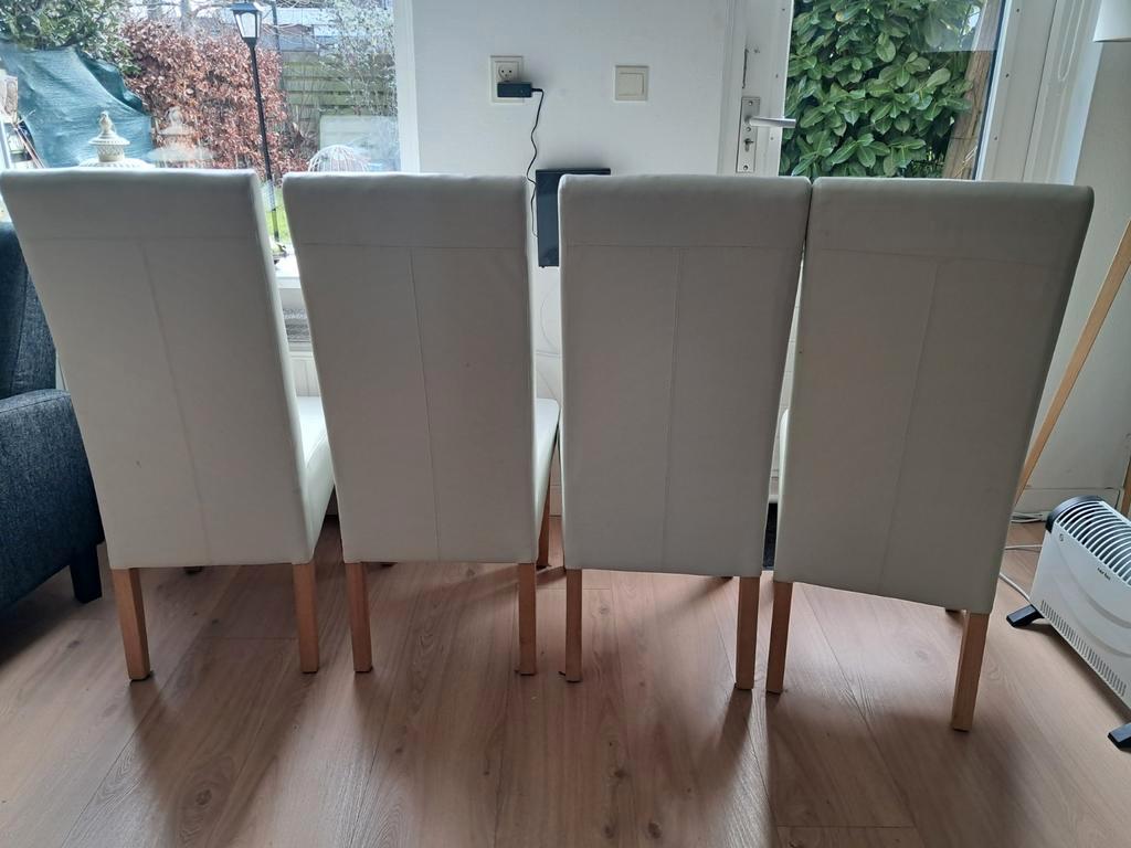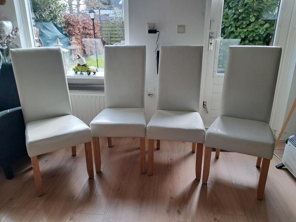 Set van 4 eetkamerstoelen. De stoelen zijn in redelijke staat en hebben een comfortabele zitting. Ideaal voor een gezellige eethoek en bovendien gratis, per direct op te halen๐๐ voor meer info stuur