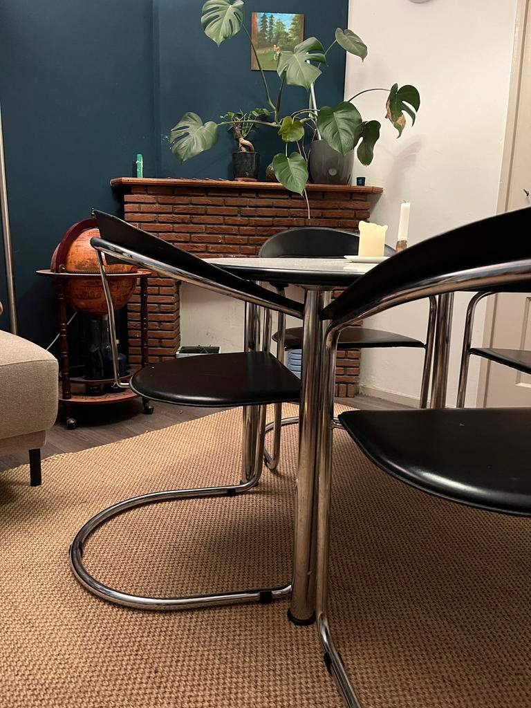 Leuke retro eettafel 110 cm rond gratis. Stoelen zijn al verkocht, enkel de tafel is nog over. Poten zijn er al afgehaald, kan zo meegenomen worden.