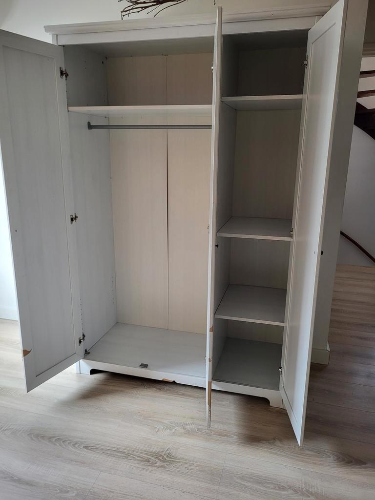 Mooie kledingkast met afmetingen 131 cm breed en 190 cm hoog. De kast is gratis af te halen in amersfoort zuid. Zelf uit elkaar halen, anders past het niet door trapgat!