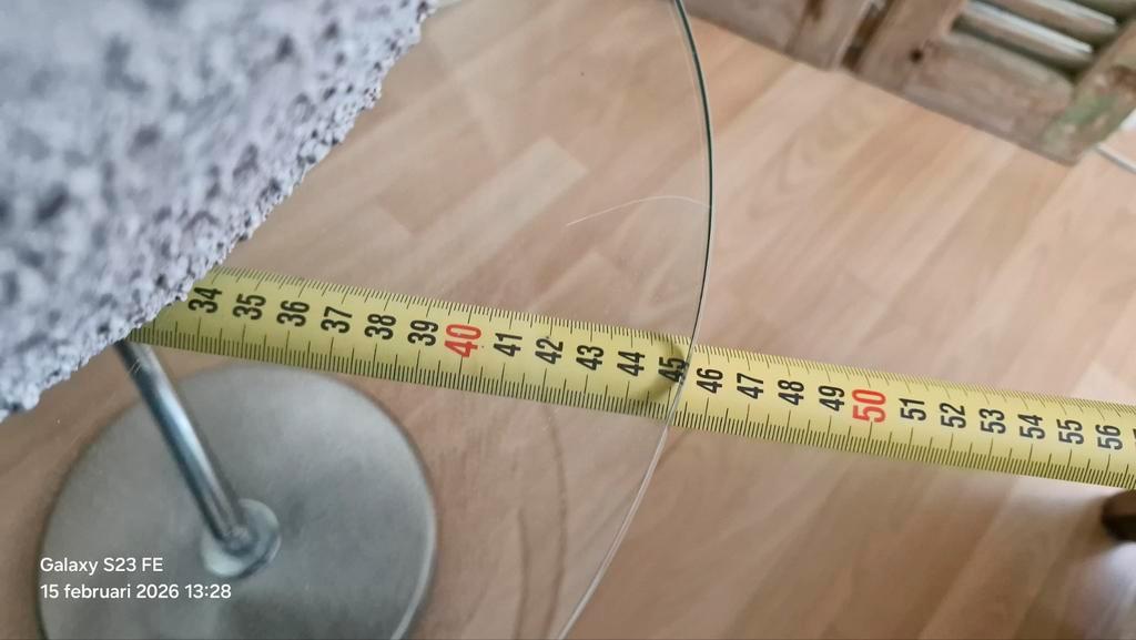 Elegant glazen tafeltje met afmetingen 45 x 55 cm. Perfect als bijzettafel of decoratief element in uw interieur. Het tafeltje is in goede staat en klaar voor gebruik.