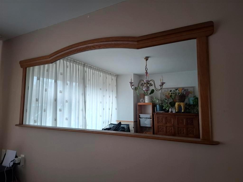 Mooie spiegel met een klassieke eikenhouten lijst. De spiegel is in goede staat en is een echte blikvanger. Ook mooi om de lijst een kleurtje te geven. Perfect voor in de woonkamer, hal of slaapkamer.