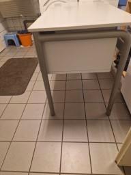 Bureau met houten blad en metalen poten, gebruikt maar helemaal heel