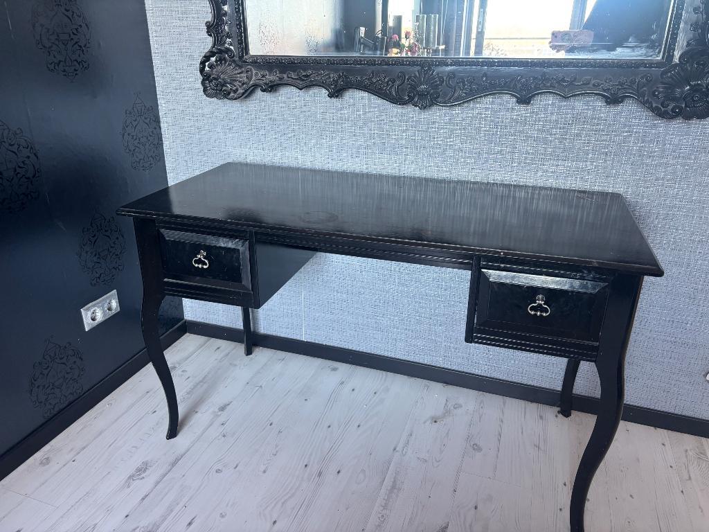 Opknappertje! Zwarte hoogglans toilettafel / kaptafel / bureau 124 cm breed 57 cm diep hoogte vergeten op te meten, geen laag kaptafel model iets hoger, meer bureau hoogte gratis ophalen appartement m