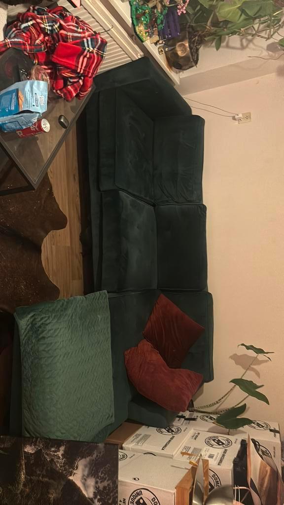 Moet voor aankomende woensdag weg !er moet wel zelf een verhuislift geregeld worden voor vanuit mijn woning want de bank is 1 geheel en past niet door het trappengat!groene hoekbank (hoek is links) op