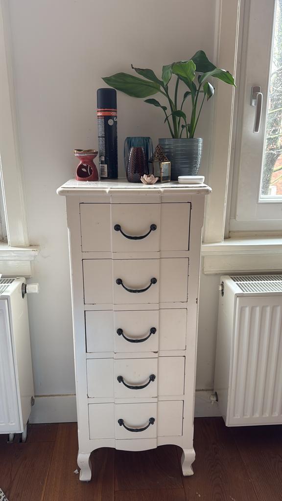 Smalle ladekast, kleine beschadigingen op de randen. 40 Cm breed 27 cm diep 54 cm joog