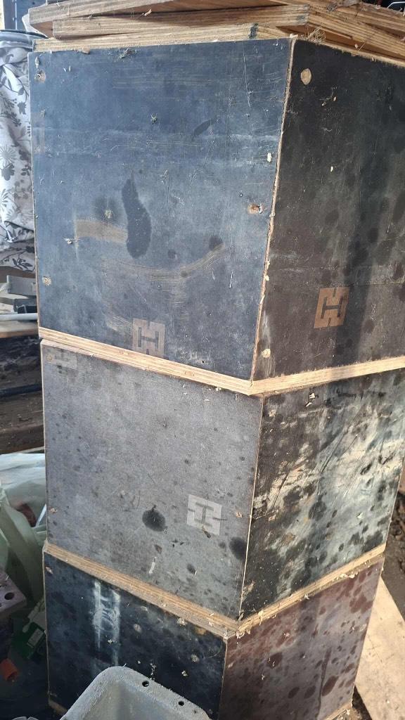 16 stevige zeshoekige houten kisten met deksel en wieltjes. Alle zijden zijn 35 cm, maximale breedte is 70 cm. Hoogte 38 cm excl. Wieltjes (3 cm), totaal 41 cm hoog. Ideaal als opbergkist, display, de