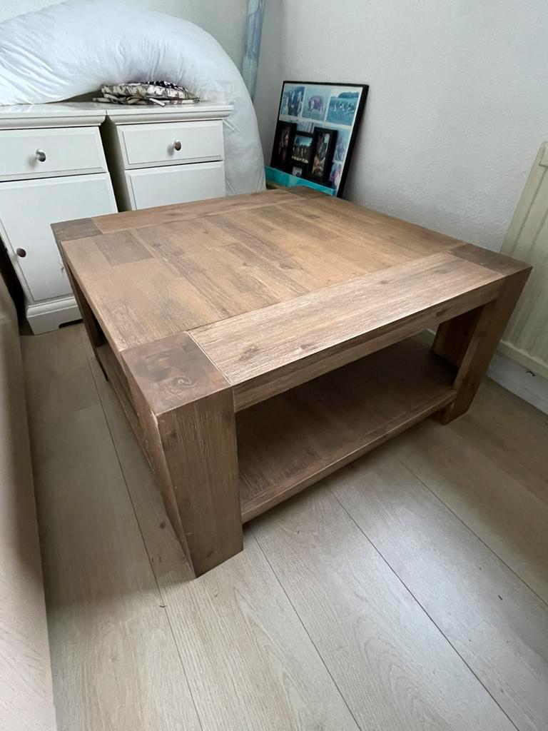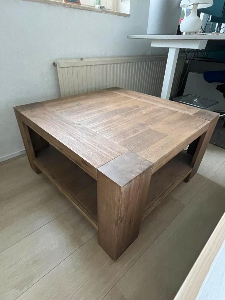 Stevige houten salontafel. Heeft wat beschadigingen (zie foto’s) en we willen er zsm vanaf, vandaar gratis op te halen in maastricht (randwyck, dichtbij mecc/mumc). Afmetingen: breedte: 80cm diepte: 8